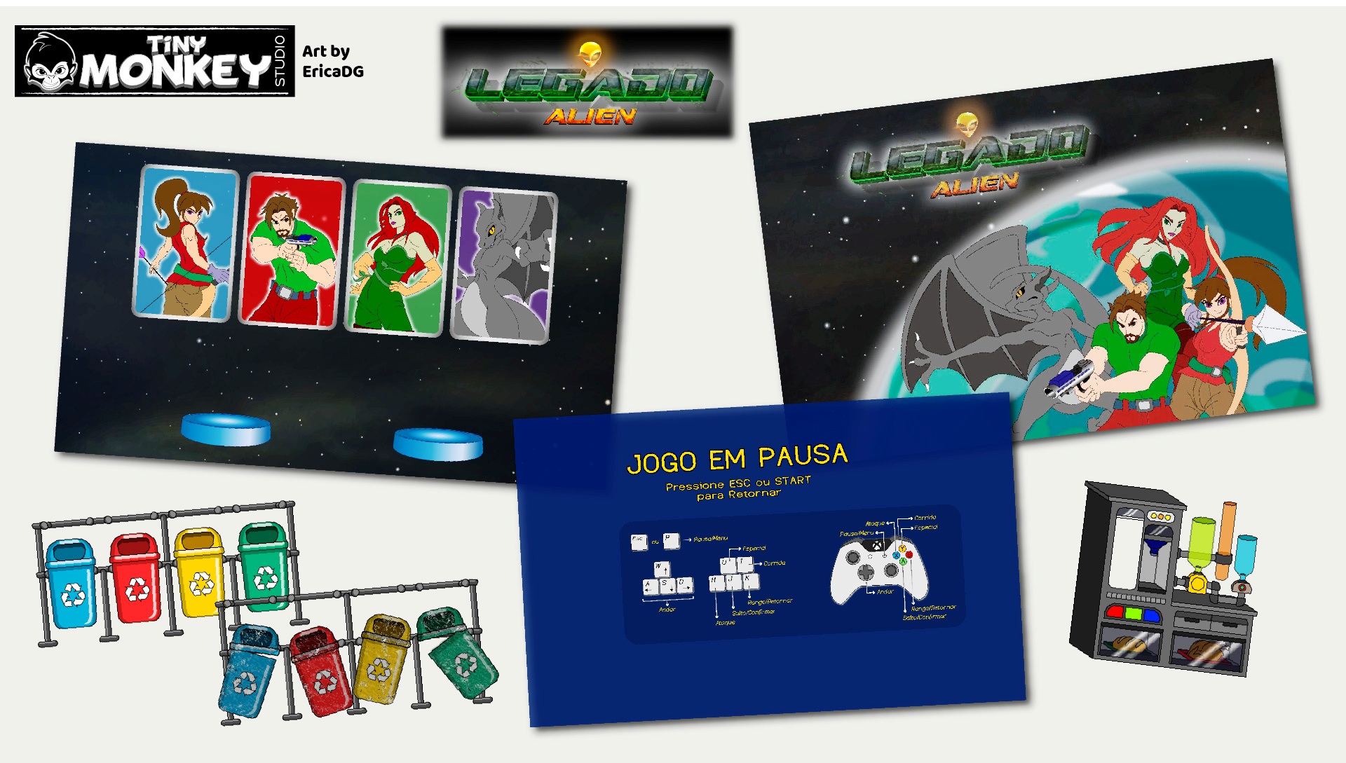 Artes 2D, Menu principal, Splash Screen, Character Design e Concept Art.